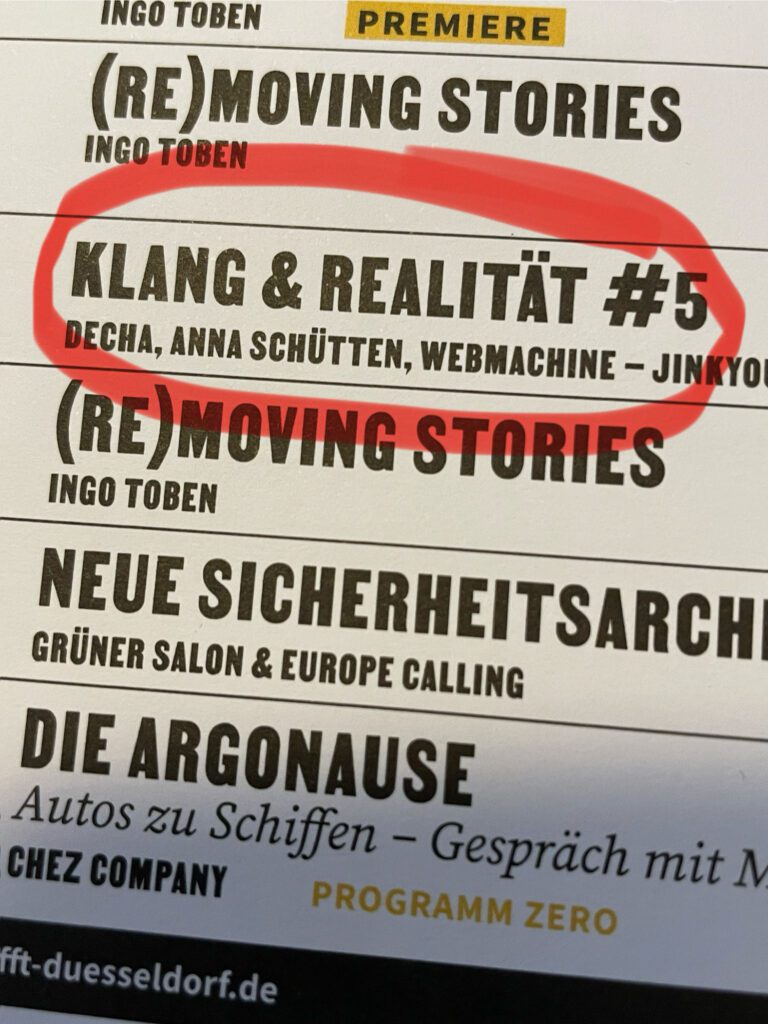 Die Reihe Klang & Realität präsentiert eine vielschichtige Auswahl an Sound- und Musikrealisationen von aktuellen und ehemaligen Teilnehmer*innen des gleichnamigen Studiengangs am Institut für Musik und Medien an der Robert Schumann Musikhochschule. Phillip Schulze kuratiert akustische Werke, Musikgruppen und Klanginstallationen zwischen Experiment und Pop, Struktur und Freiheit, Fiktion und Realität.